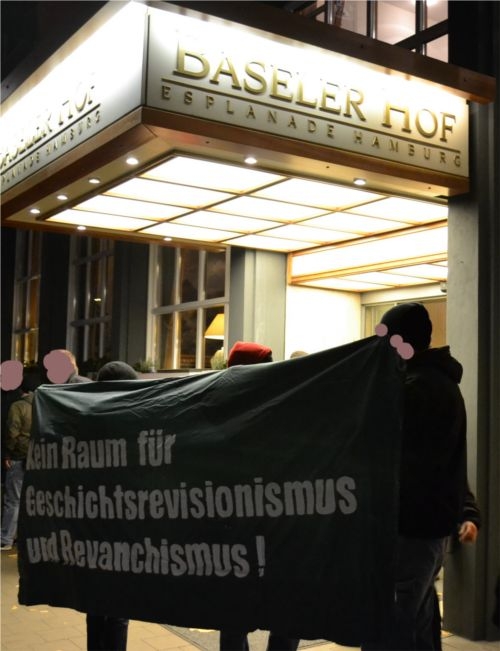 Ein Bericht Ca. 30 Antifaschistinnen und Antifaschisten protestierten gestern am 31. Oktober 2011 vor dem Hotel Baseler Hof in der Hamburger Innenstadt. Anlass war eine Veranstaltung der extrem rechten Staats- und Wirtschaftspolitischen Gesellschaft e.V. (SWG) bei der ihr Vorsitzender Dr. Menno Aden referierte. Menno Aden publiziert seit Jahren Aufsätze, welche die Verbrechen des Nationalsozialismus und […]